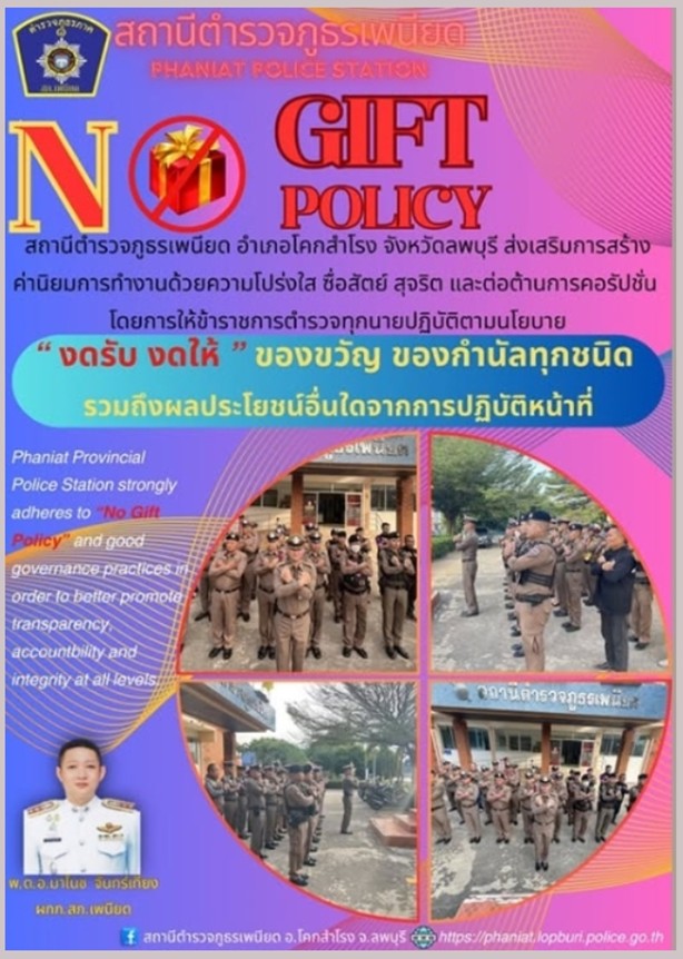 นโยบายต่อต้านการรับสินบน ไม่รับของขวัญและของกำนัลทุกชนิด (No Gift Policy)